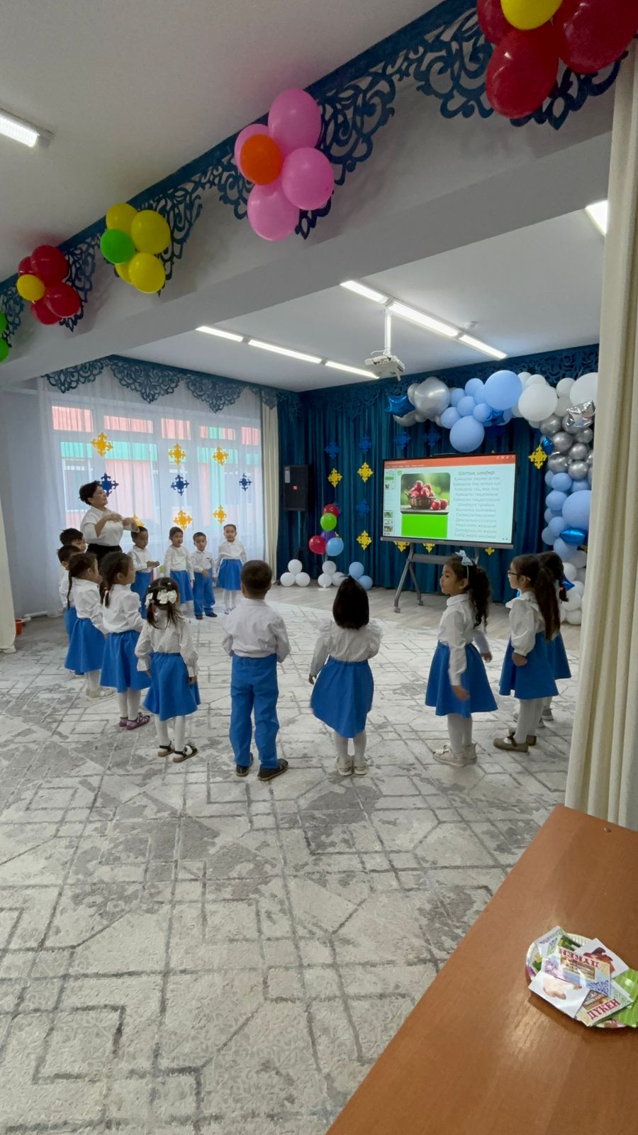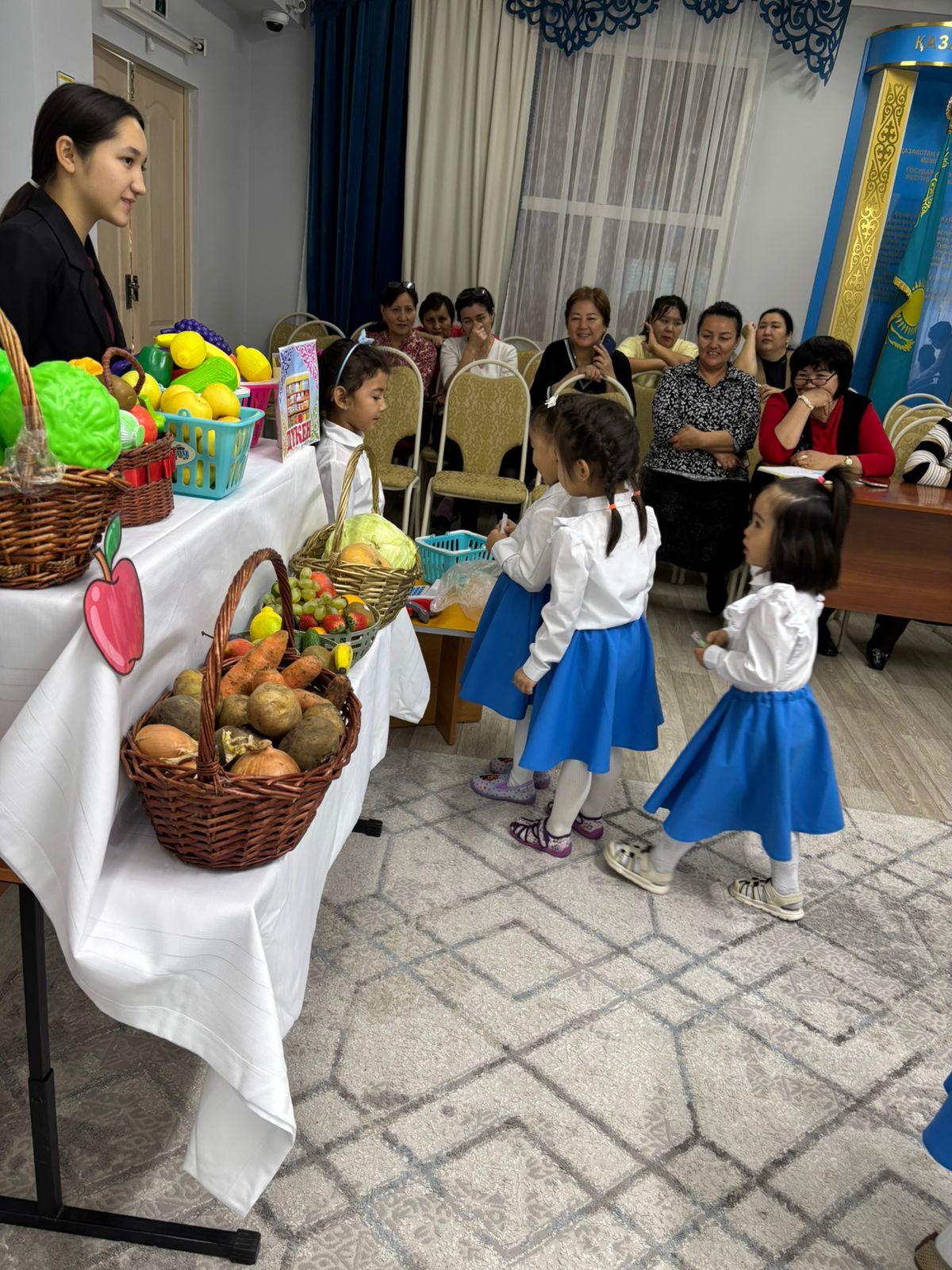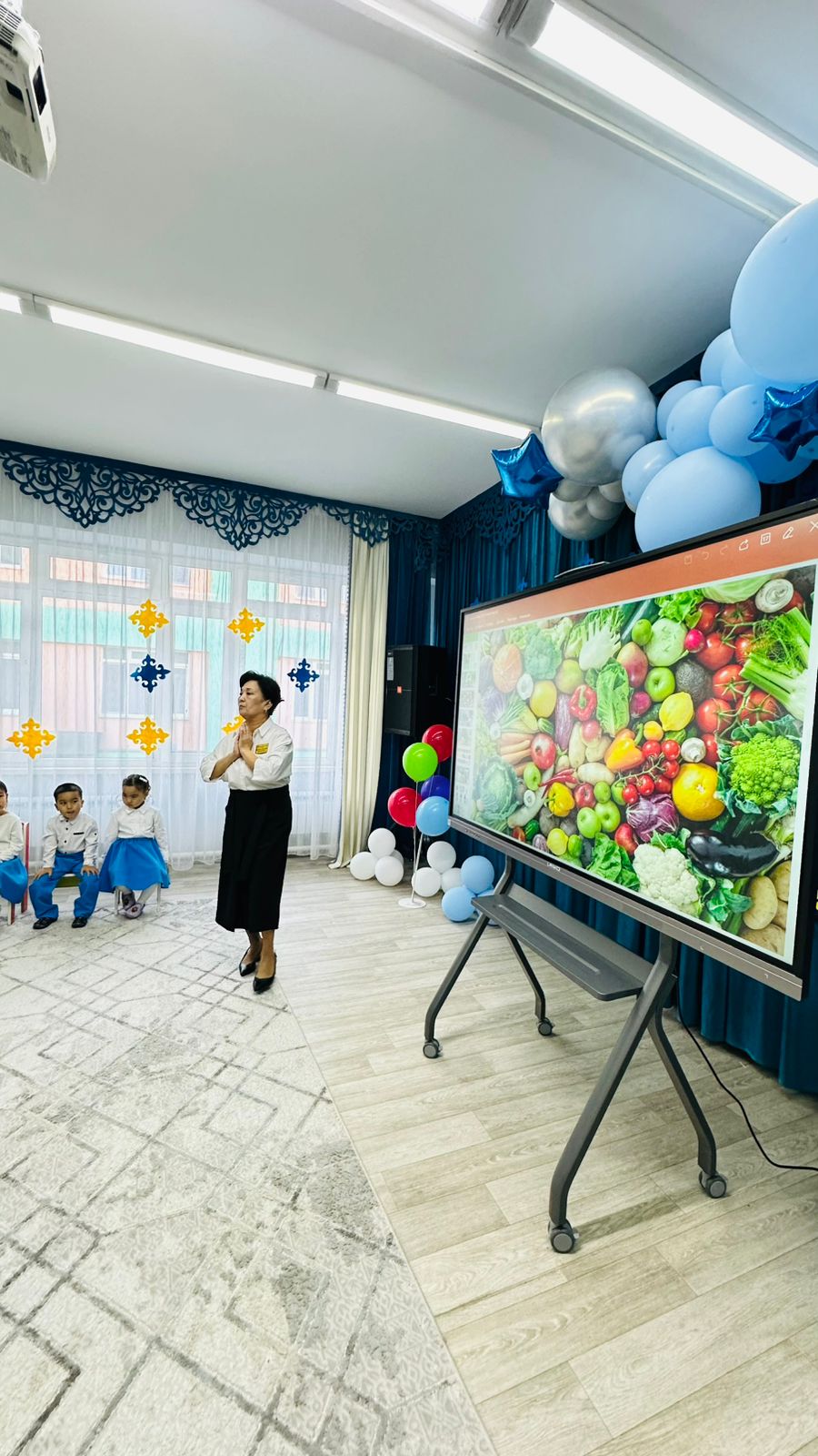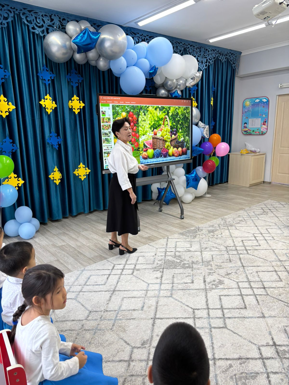 "Жұлдыз " ересек тобы Тақырыбы: Дәрумендер пайдасы Мақсаты Балаларды көкөністер мен жемістердің пайдасы туралы айтып түсіндіру, адам ағзасына өте қажет екенін ,слайд арқылы көрсету. Балаларды қаржылық сауаттылыққа үйрету. Ойындар ойнату арқылы, сұраққа жауап беруге, тілдерін дамыту .