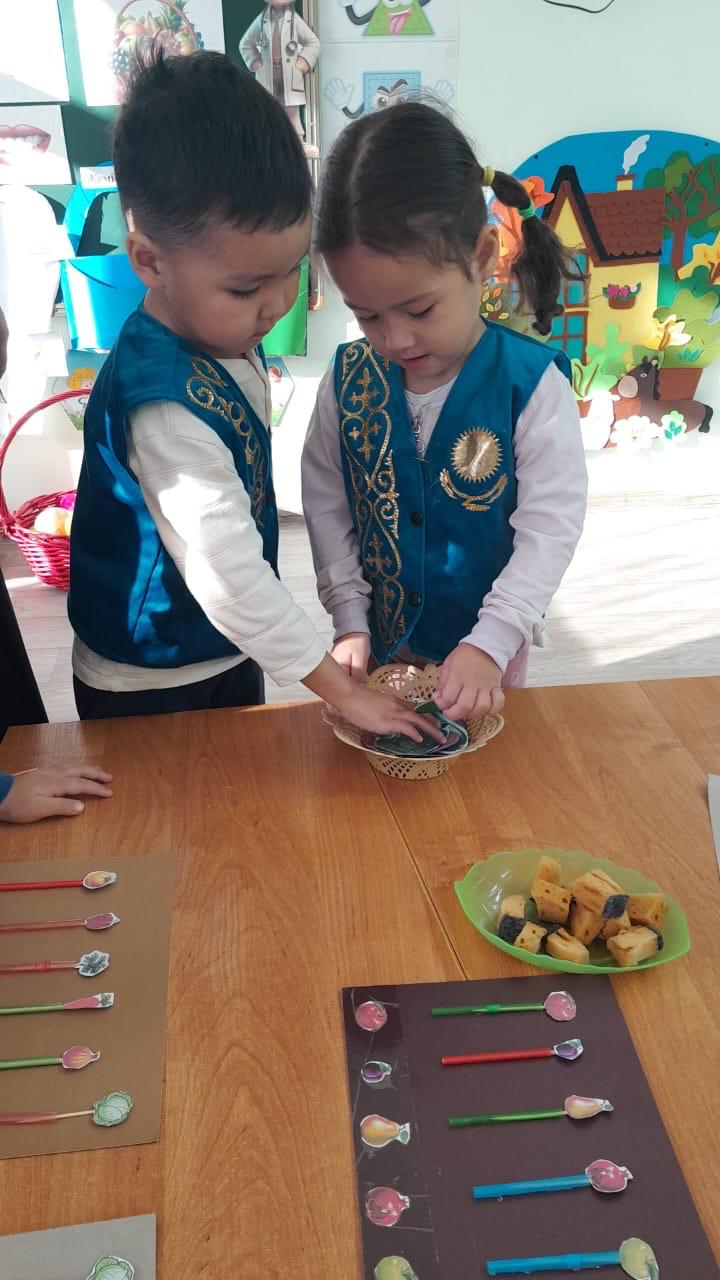 18 ноябрь 2025 0 1 2 3 4 5 Орта "Гүлдер" тобы Тақырыбы: Денім сау болсын! Орта "Гүлдер" тобы Тақырыбы: Денім сау болсын!Міндеті: Балаларға зиянды және пайдалы тағамдарды ажыратуға үйрету. Жемістер мен көкөністерді таныстыра отырып, пайдалы жағын айту. Дене жаттығуларын ойын арқылы көрсету.