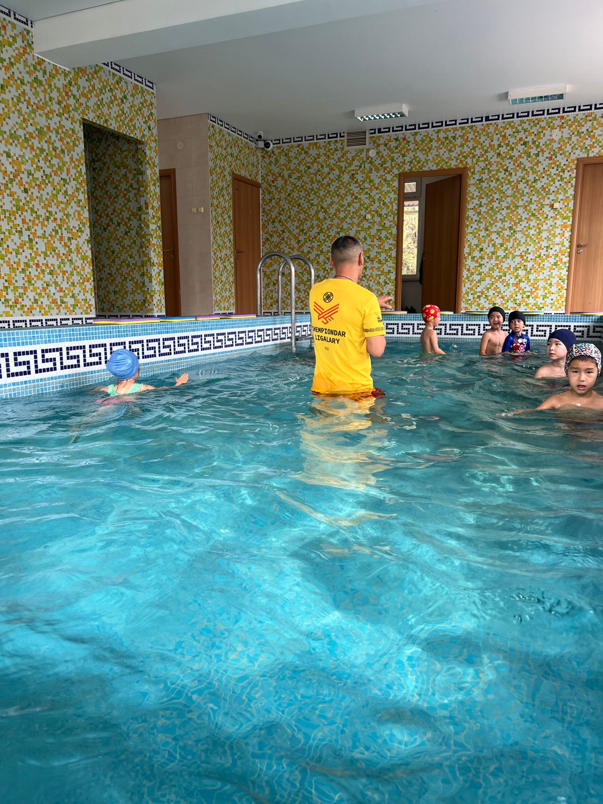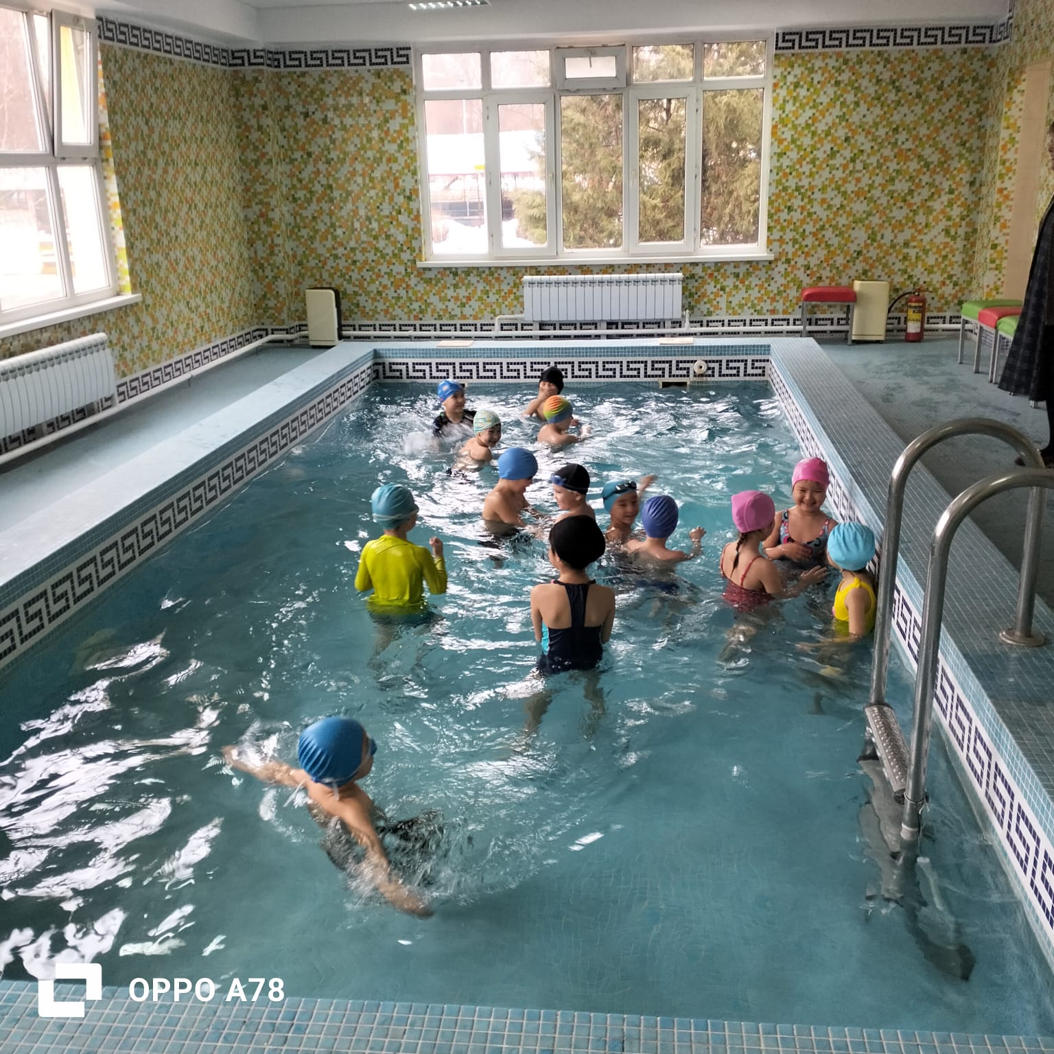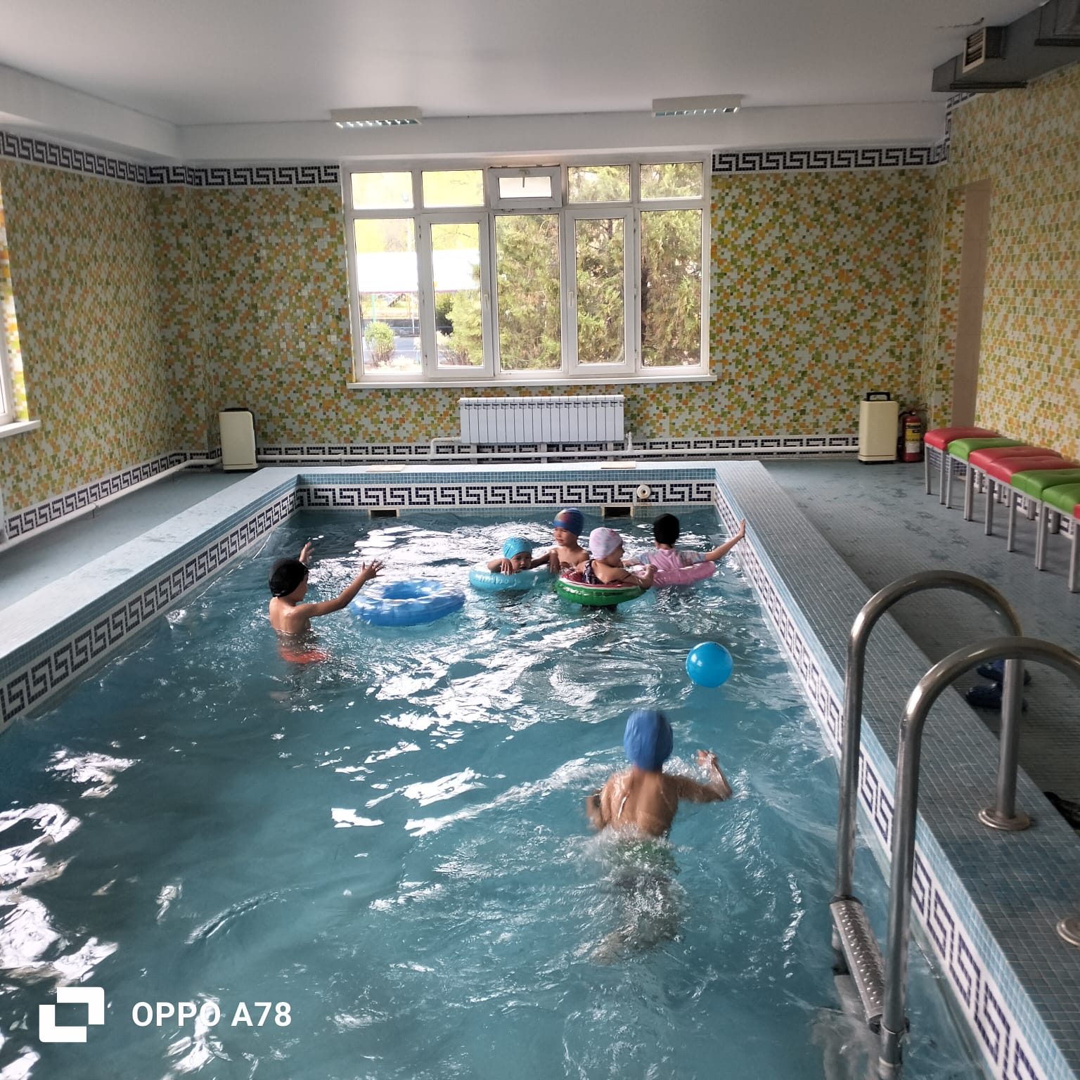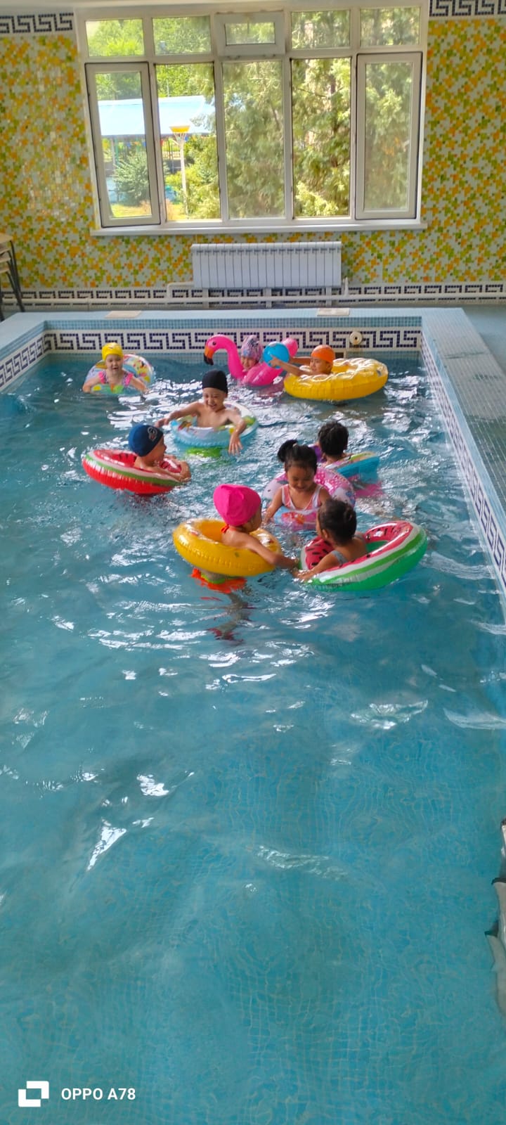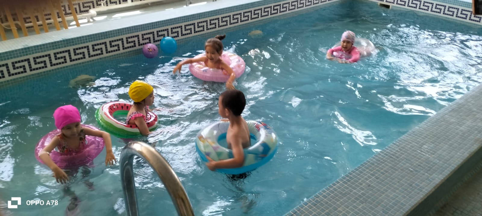 «№166 бөбекжай - балабақшасы» тәрбиеленушілері бекітілген кестеге сәйкес аптасына 2 рет бассейнге барып, су процедураларын қабылдайды.