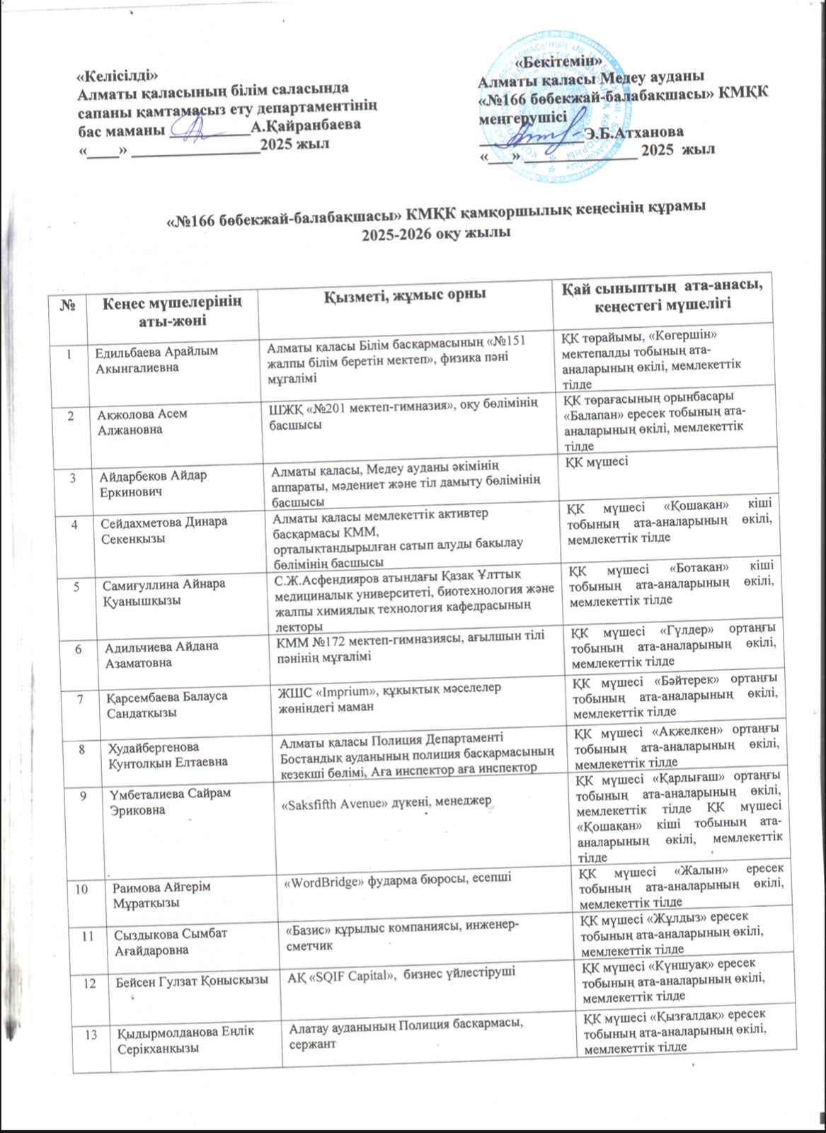 Қамқоршылық кеңес 2025 - 2026 оқу жылы » ГККП "Ясли сад №166"